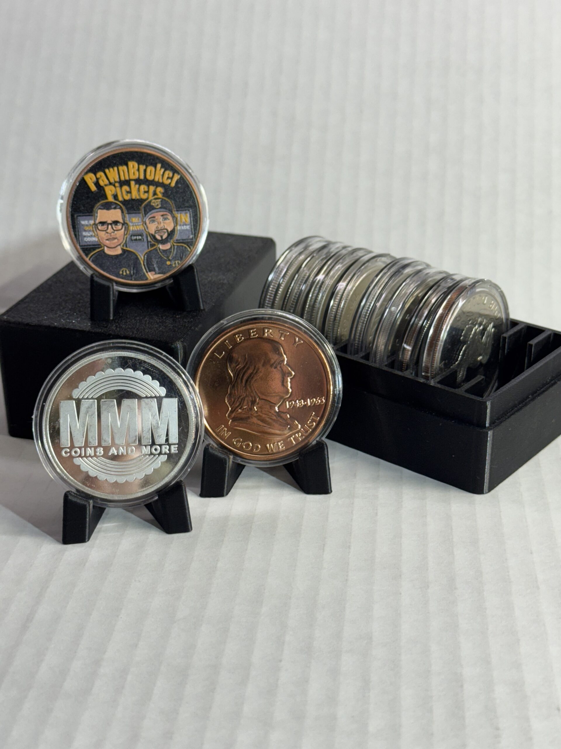 Custom 3D printed vault box for holding a quantity of  10 x 1 oz coins (in standard capsules).